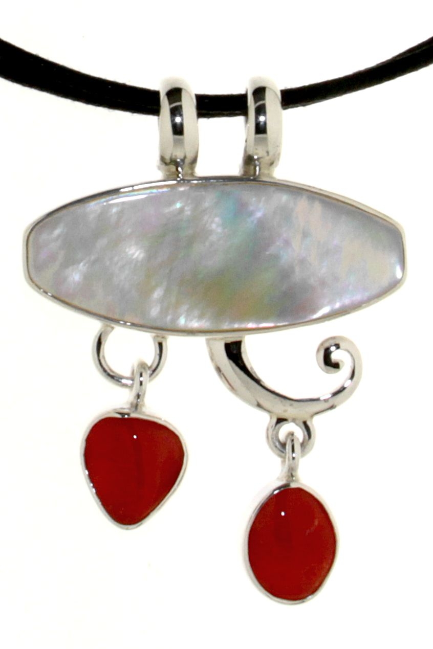 Necklace in 925 silver with Mother of Pearl and Red Coral of the Mediterranean Sea