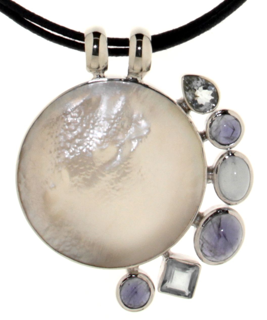 Necklace in 925 silver with Mother of Pearl, Aquamarine and Iolite