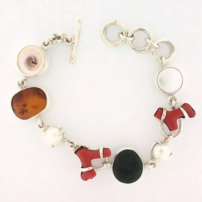 Bracciale con Ambra, Corallo Rosso e Conchiglia