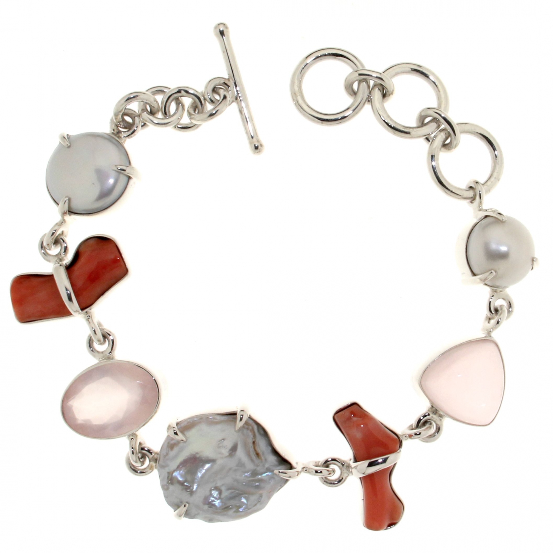 Bracciale con Corallo Rosa, Perle, Acquamarina e