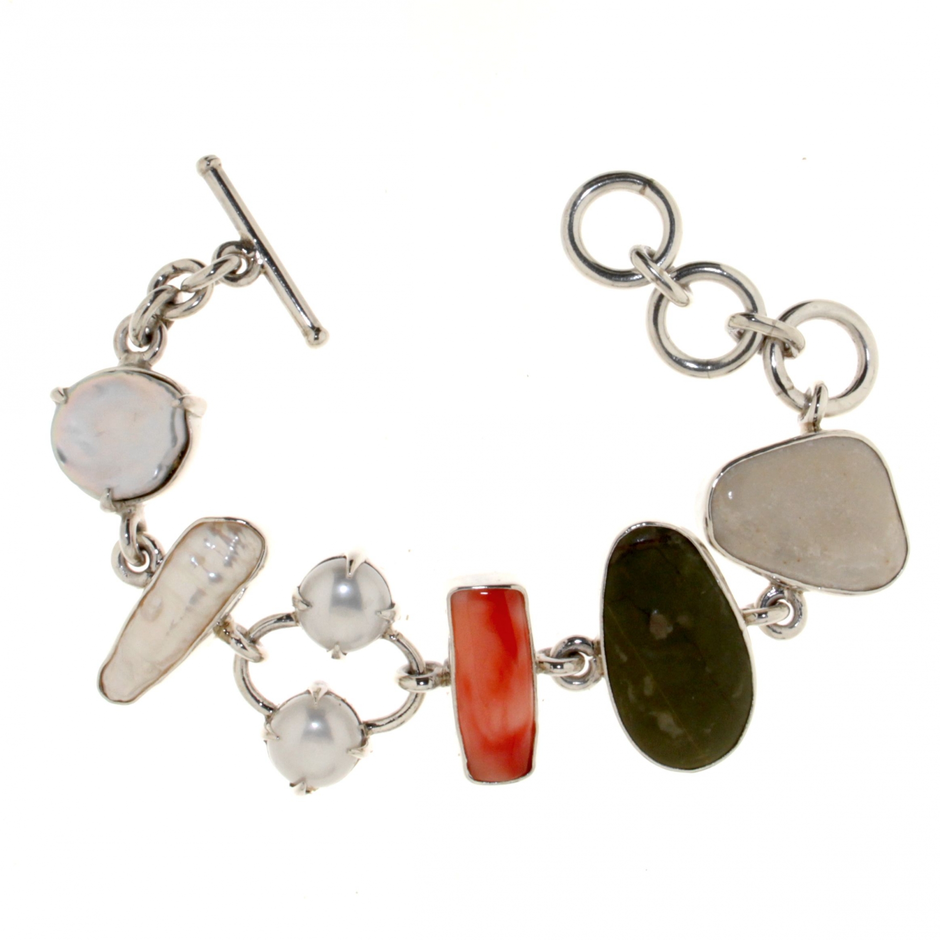 Bracciale Sassi Fantasia con Sassi del Mare italiano, Corallo Rosa e Perle
