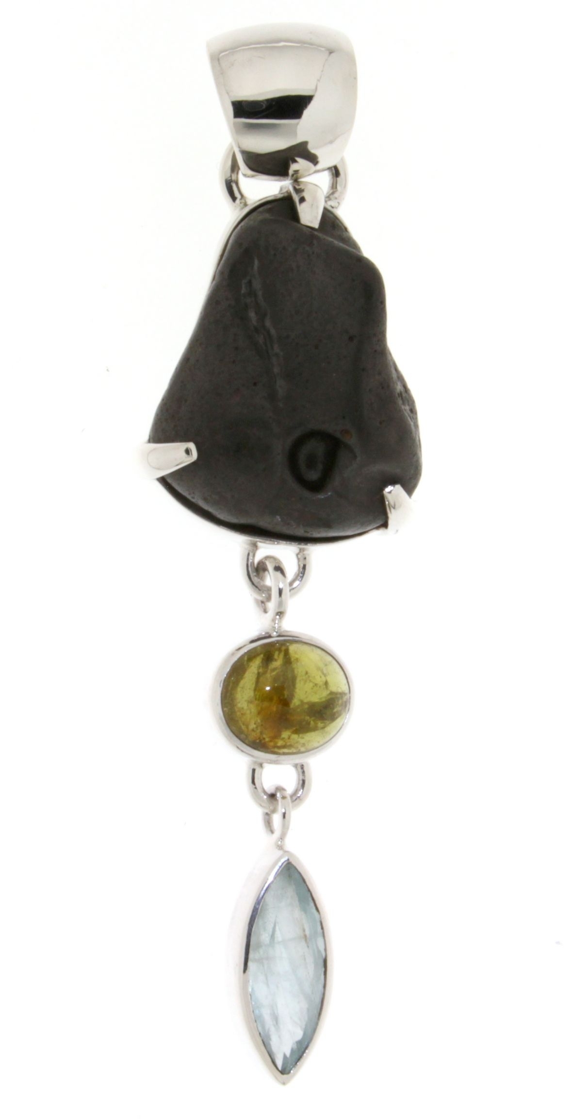 Pendente con Frammento di Ferro Fuso dagli Etruschi, Acquamarina e Tormalina