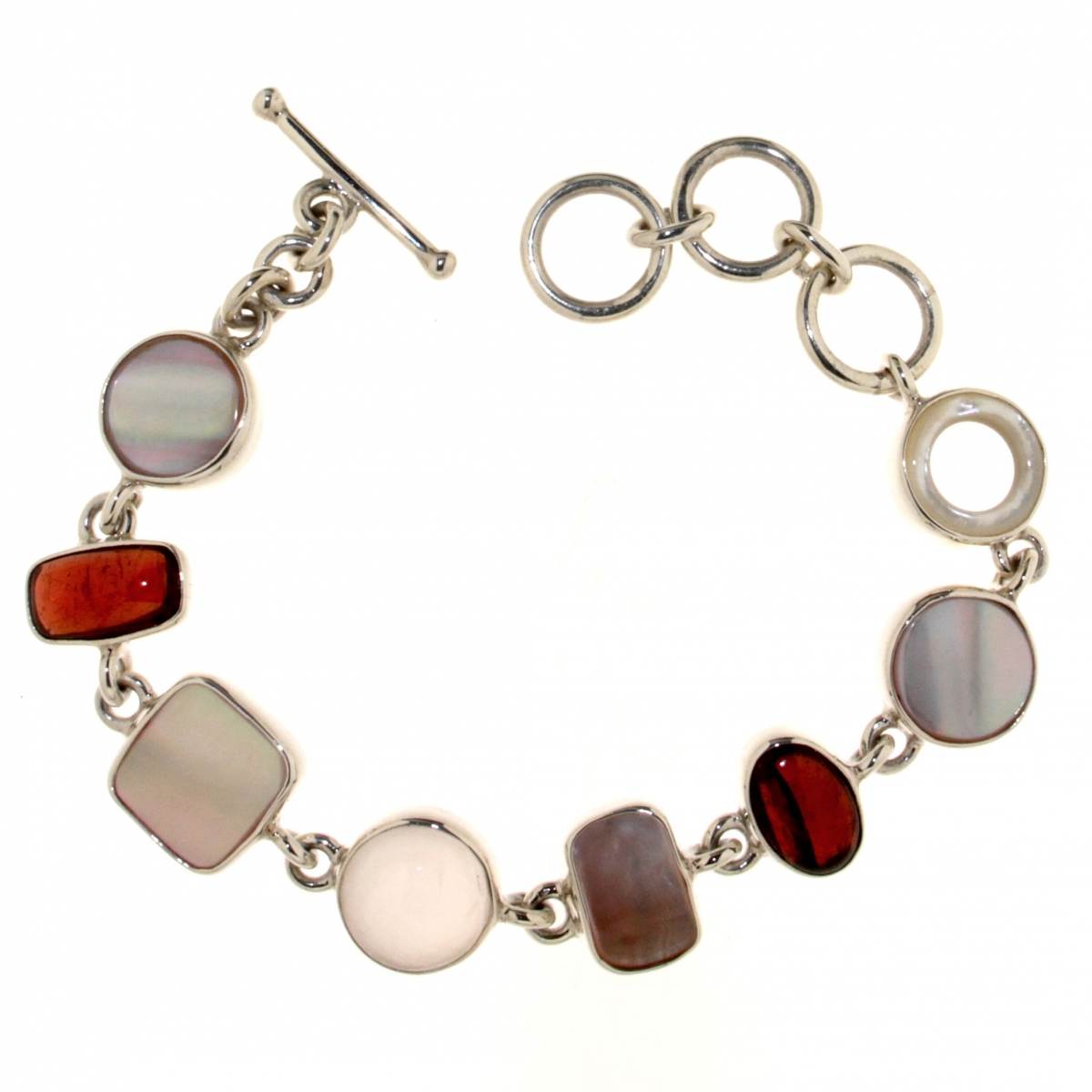 Bracciale con Madreperla, Conchiglia, Granato e Quarzo Rosa