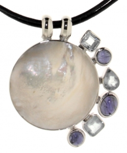 Bracelet in 925 silver, coral, mother of pearl, amber and stones