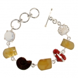 Bracelet with Coral, Mother of Pearl, Rutilated Qu