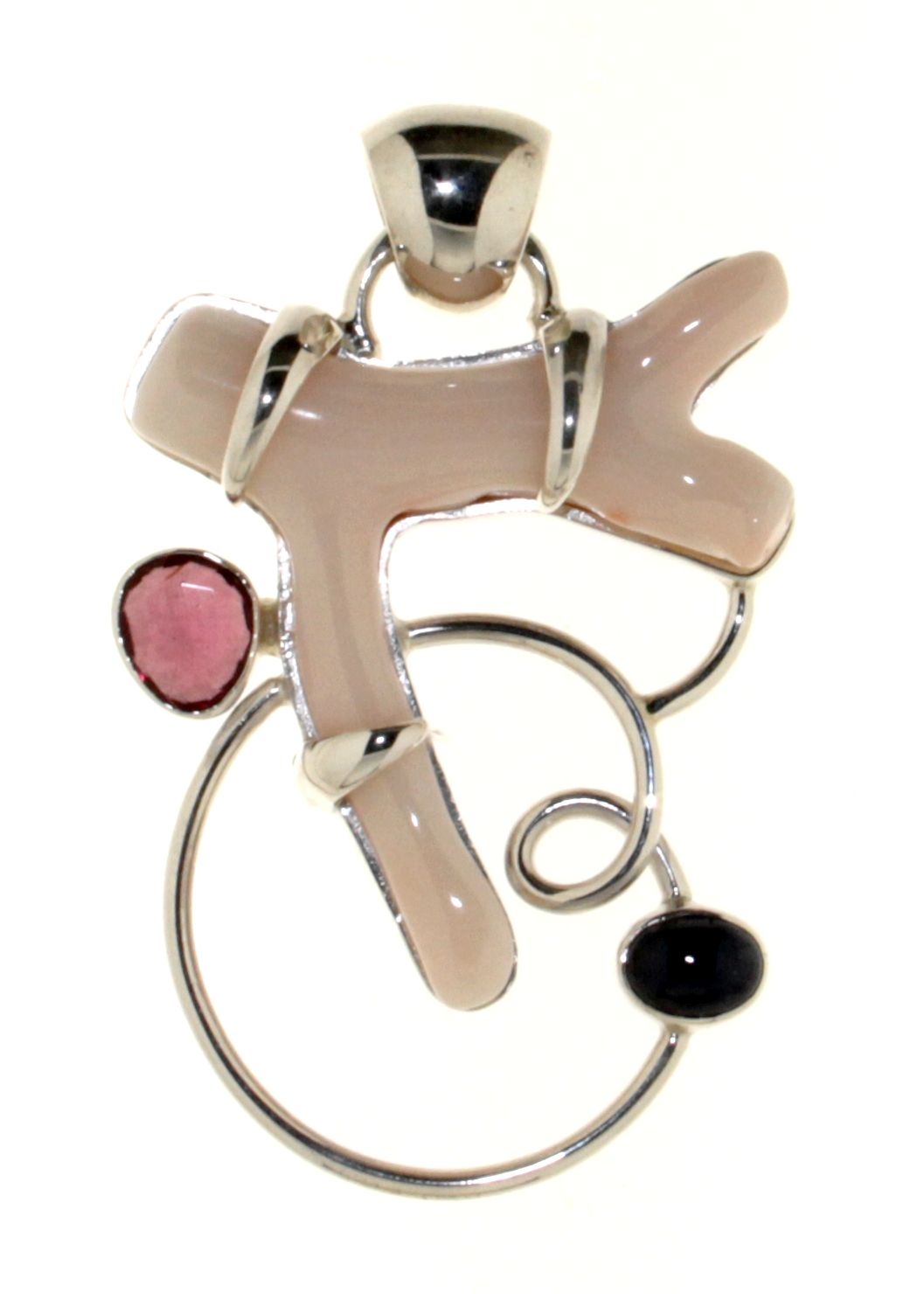 Pendant in 925 silver with White Coral, Rhodolite and Sapphire