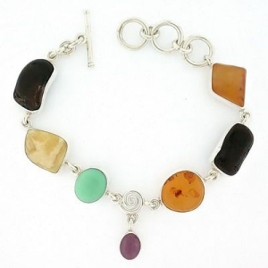 Necklace in 925 silver, amber, pearl and stones