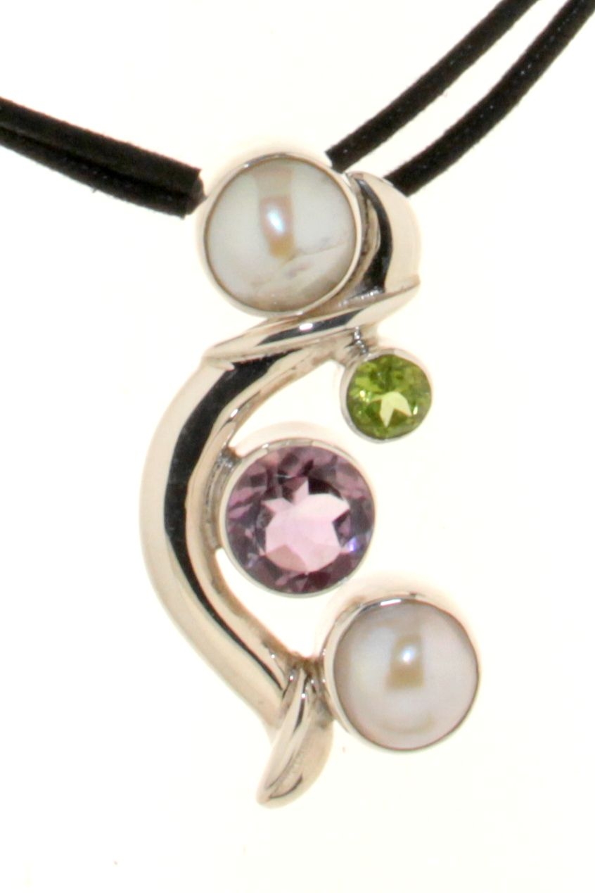 Necklace in 925 silver with freshwater Pearls, Faceted Amethyst and Peridot