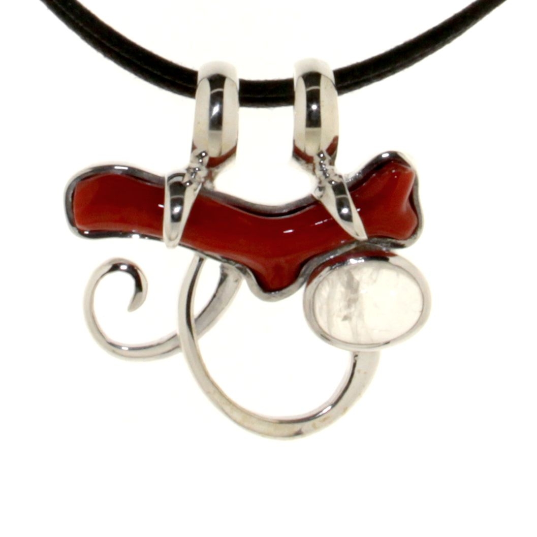 Necklace with 925 silver with Red Coral of the Mediterranean Sea and Light Labradorite (Rainbow Moonstone)