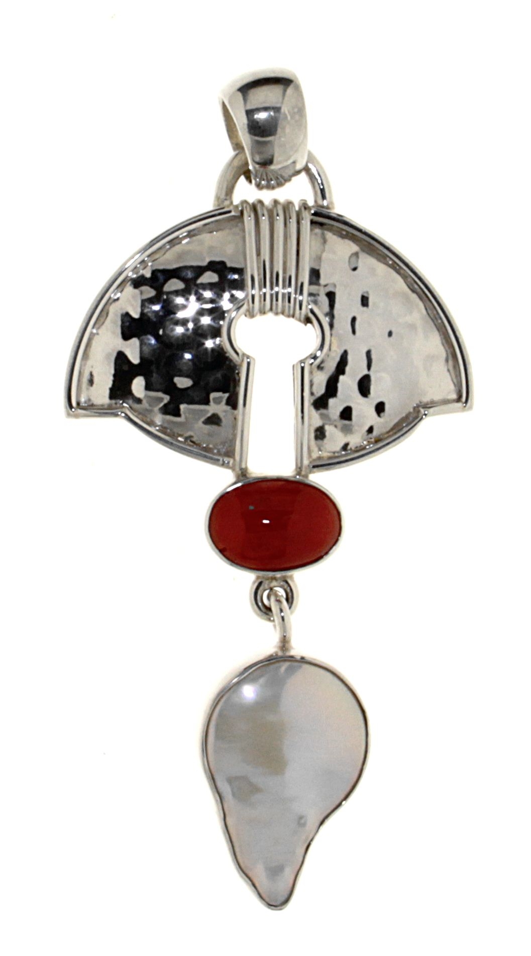Pendant in 925 silver with Red Coral from the Mediterranean Sea and freshwater Pearl