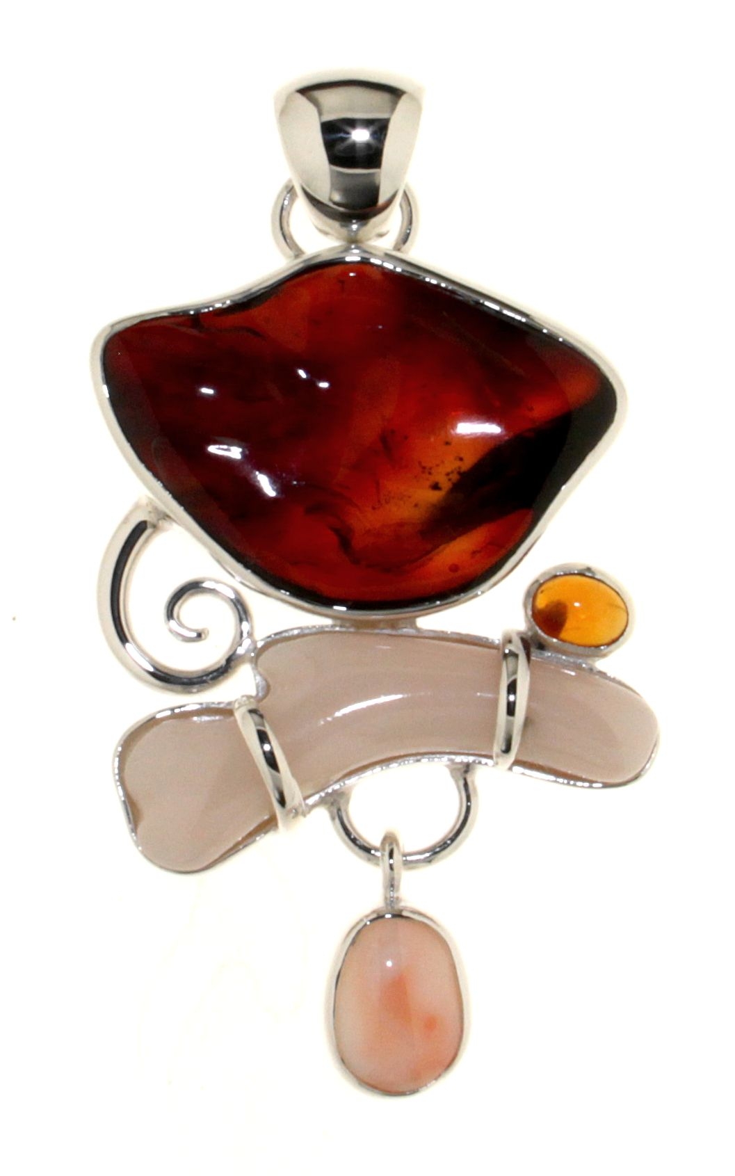 Pendant in 925 silver with Baltic Amber, Coral and Citrine Quartz