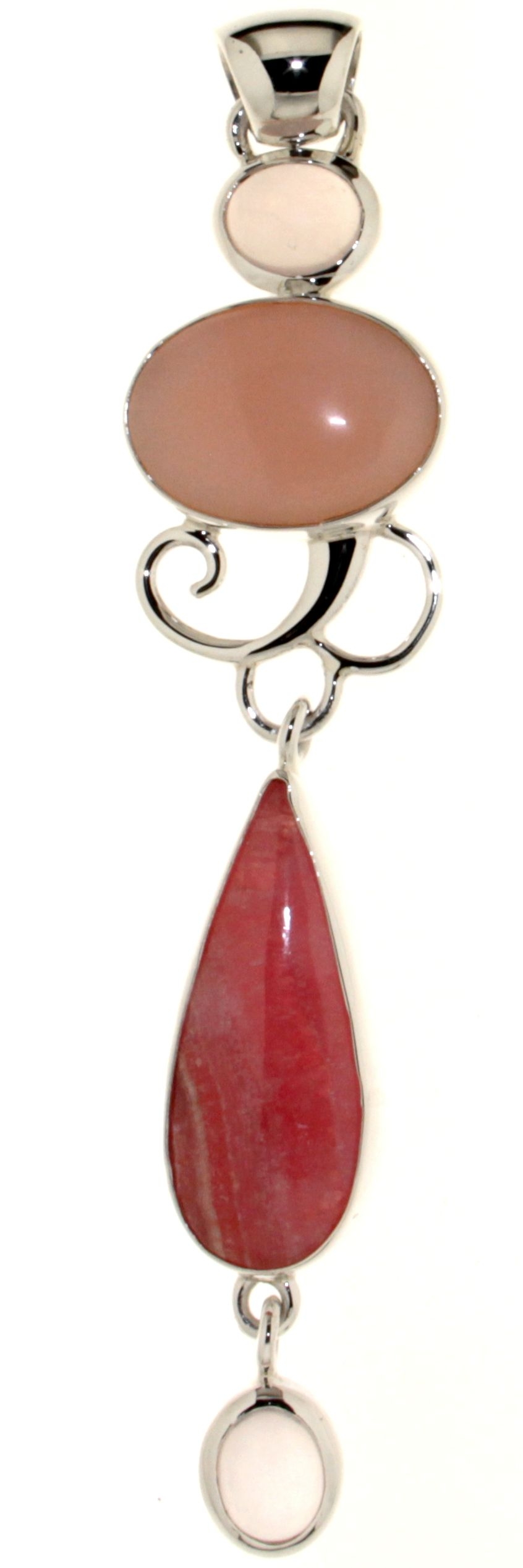 Pendant in 925 silver with Rhodochrosite, Andean Opal and Rose Quartz