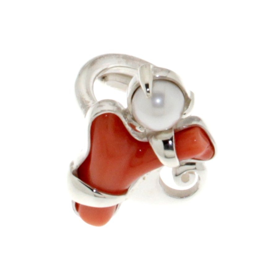 Ring in 925 silver, coral and pearl