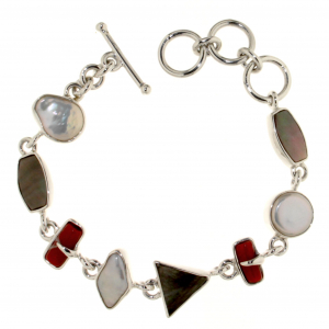 Bracciale con Conchiglia Haliotis Abalone, Ruby, Iolite and Arizona Turquoise