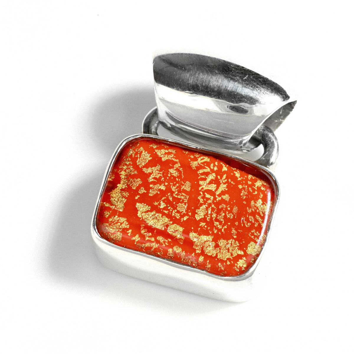 Pendente Piccolo - Carota Pendente fatto a mano in argento naturale 925 con autentico Vetro di Murano realizzato con tecnica a lume contenente foglia d'oro 24Kt per un effetto setoso e opalescente dim.= 2,5x2cm