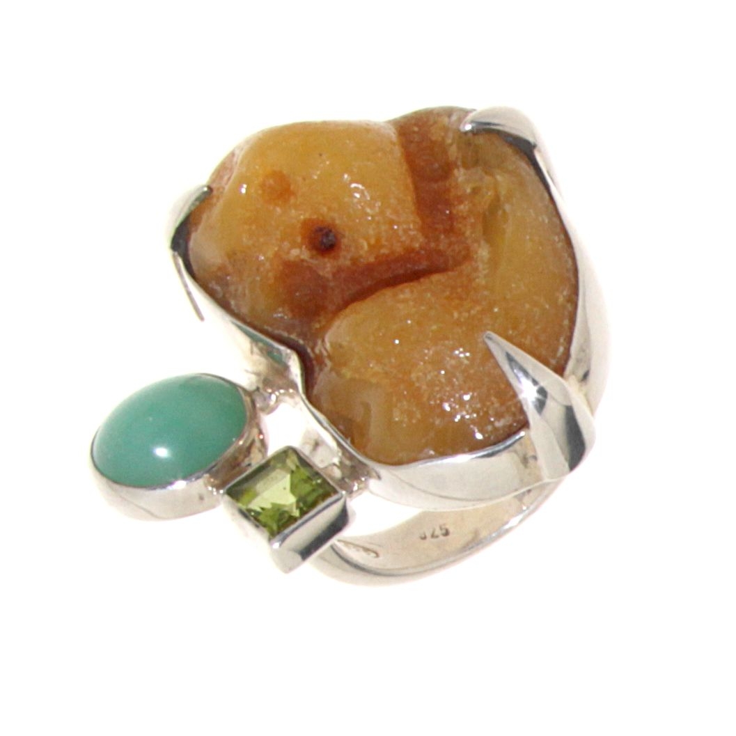 Anello Ambra della Spiaggia con Crisoprasio e Peridot - Misura 14