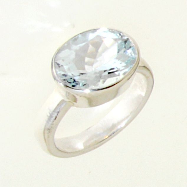 Anello Classico con Acquamarina Sfaccettata - Misura 12