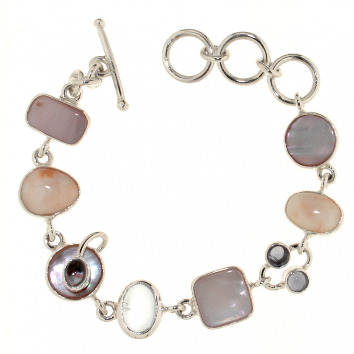 Bracciale con Corallo Bianco, Madreperla, Acquamarina e Iolite