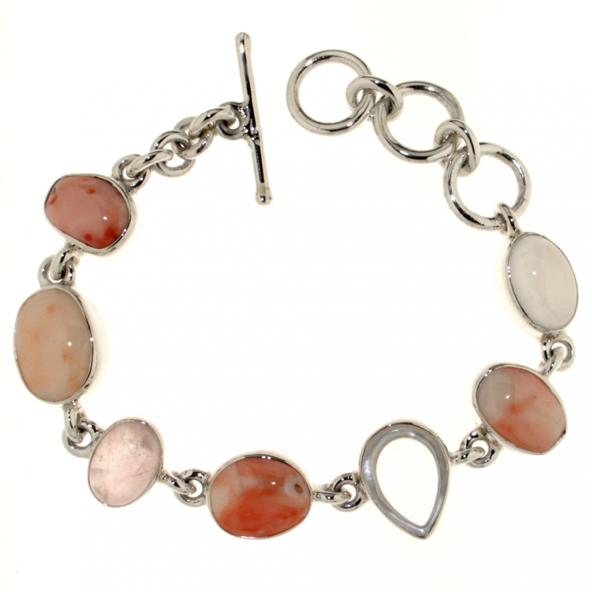 Bracciale con Corallo Rosa, Corallo Bianco, Madreperla e Calcedonio