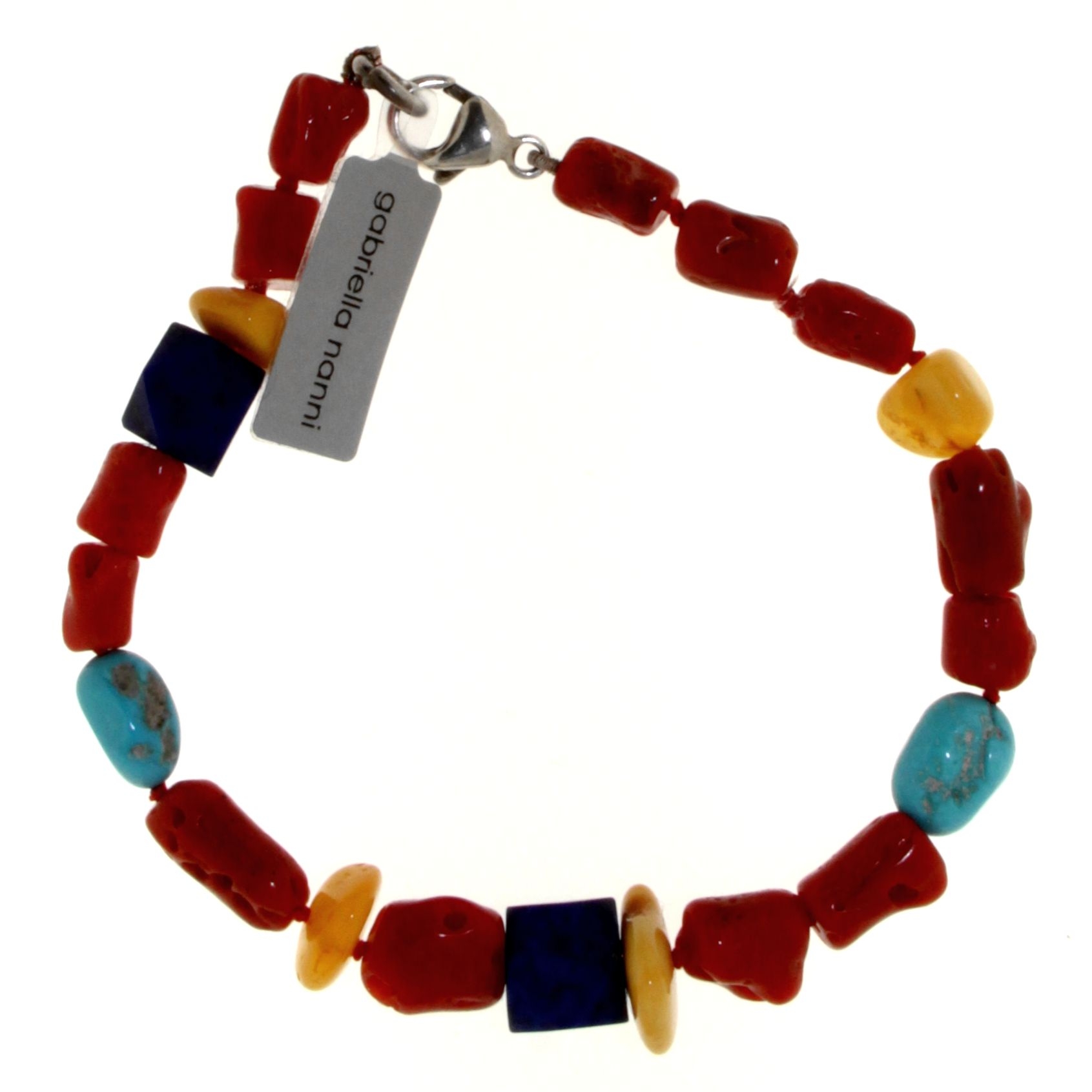 Bracciale in Corallo, Ambra, Lapislazzuli e Turchese con chiusura in Argento 925