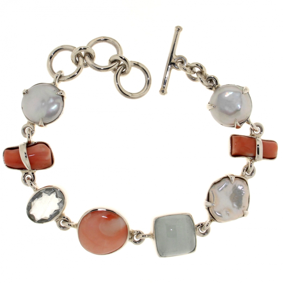 Bracciale con Corallo Rosa, Perle e Acquamarina