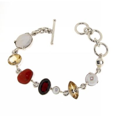 Bracciale con Granato, Perle, Corallo Rosso e Quarzo Citrino