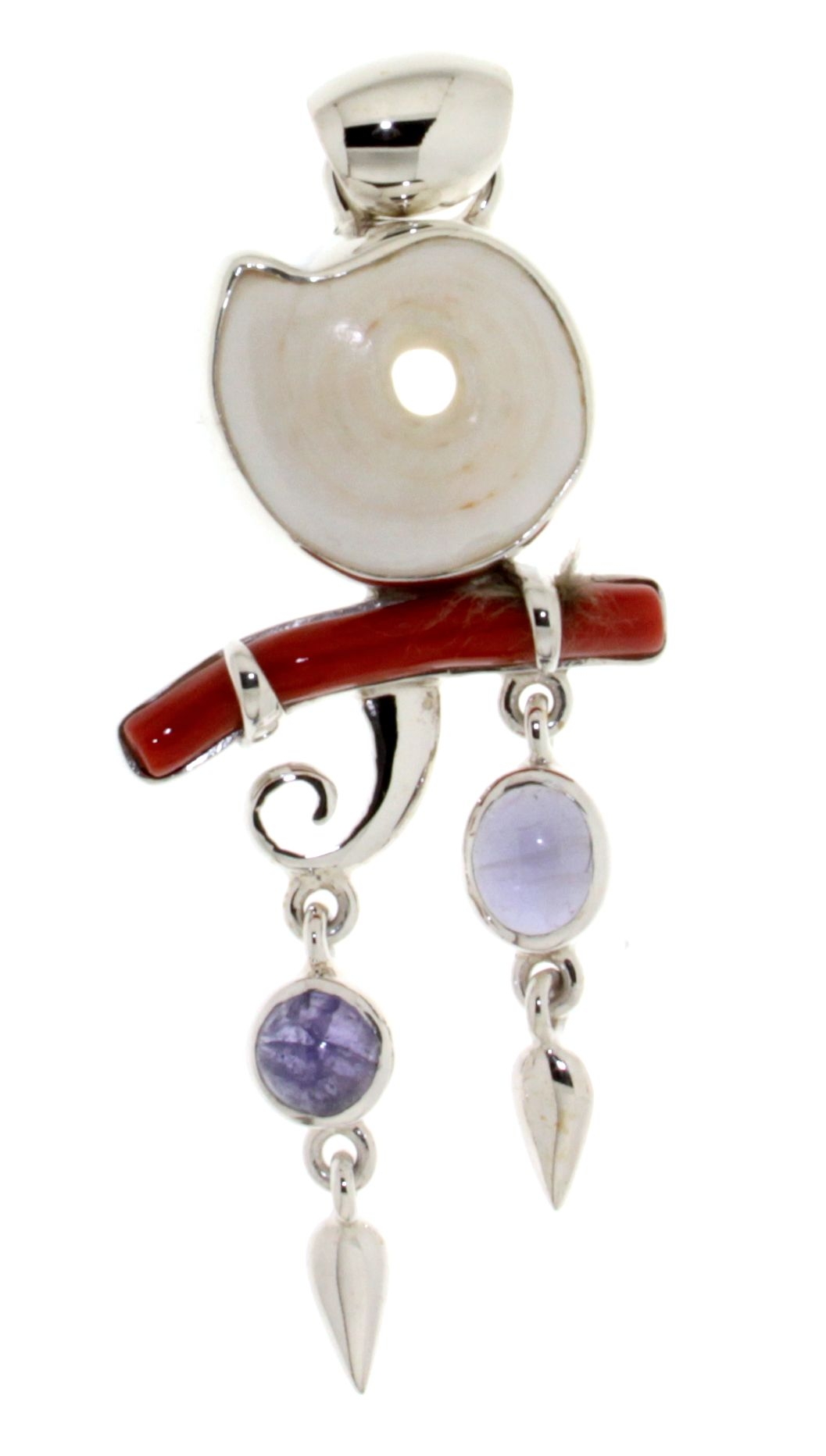 Pendente Conchiglia di Scavo, Corallo Rosso del Mar Mediterraneo e Tanzanite