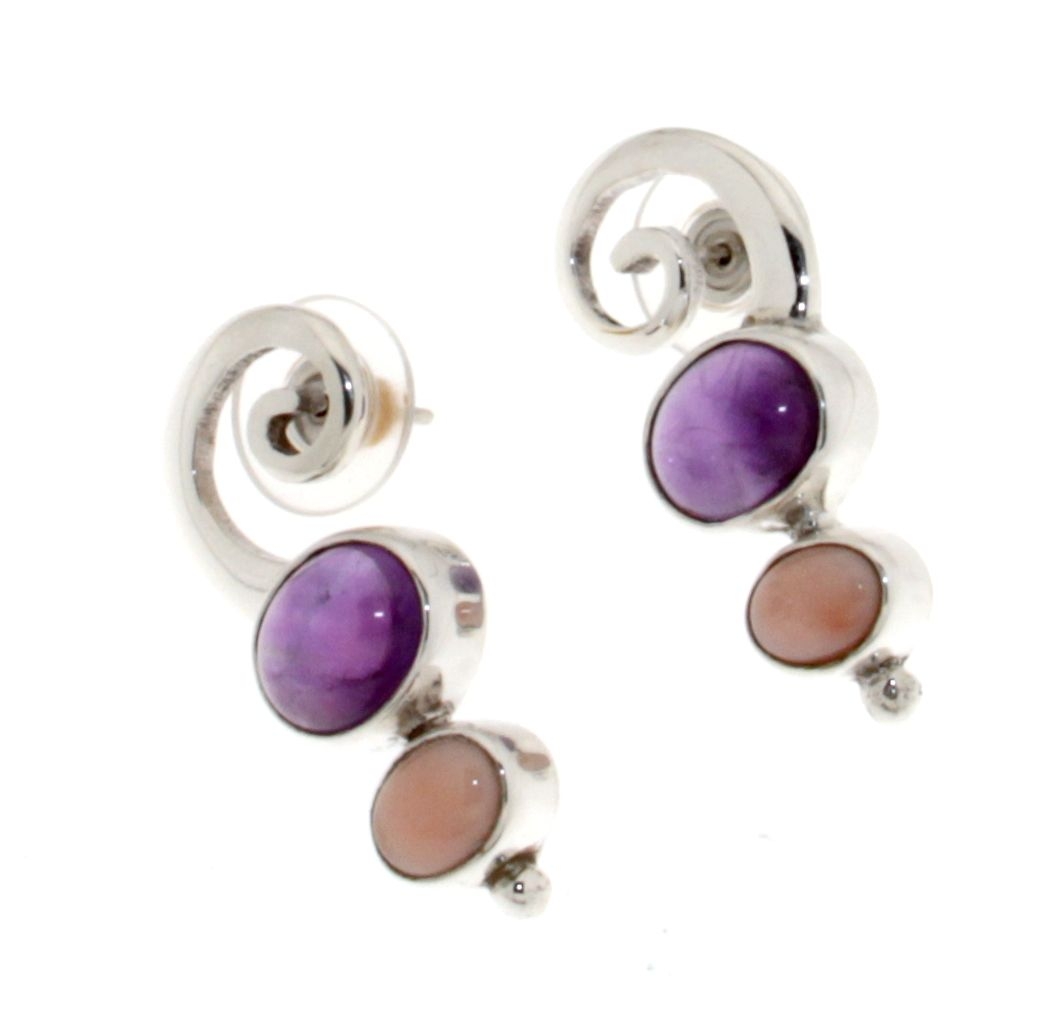 Orecchini con Corallo Cabochon e Ametista - a Lobo