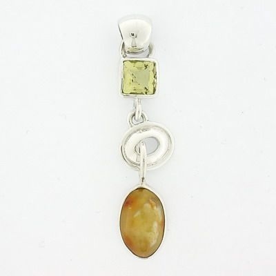 Pendente Ambra con Ovale in Argento e Quarzo Citrino