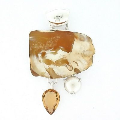 Pendente Ambra da Collezione con Quarzo Citrino e Perla