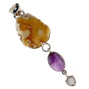Pendente Ambra della Spiaggia con Fossile e Crisoprasio