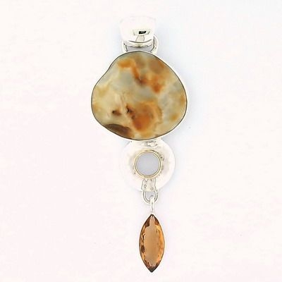 Pendente Ambra Fantasia con Cerchio in Oro e Quarzo Citrino