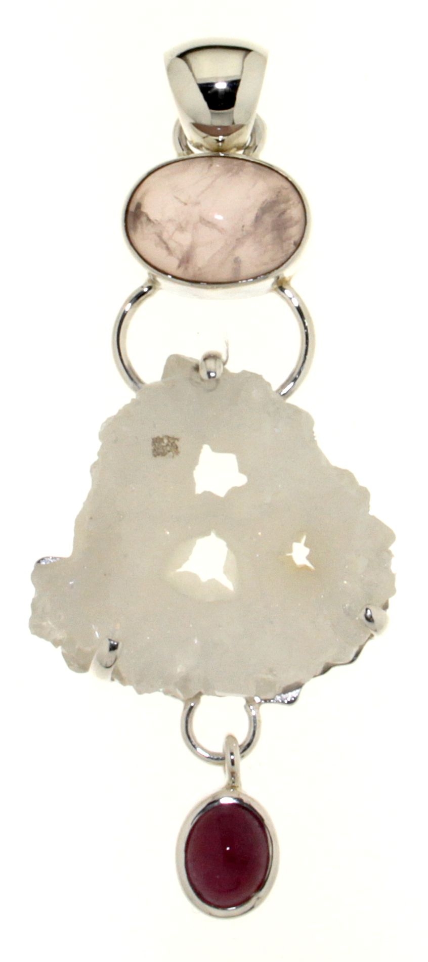 Pendente con Agata Cristallizzata, Rubino e Quarzo Rosa