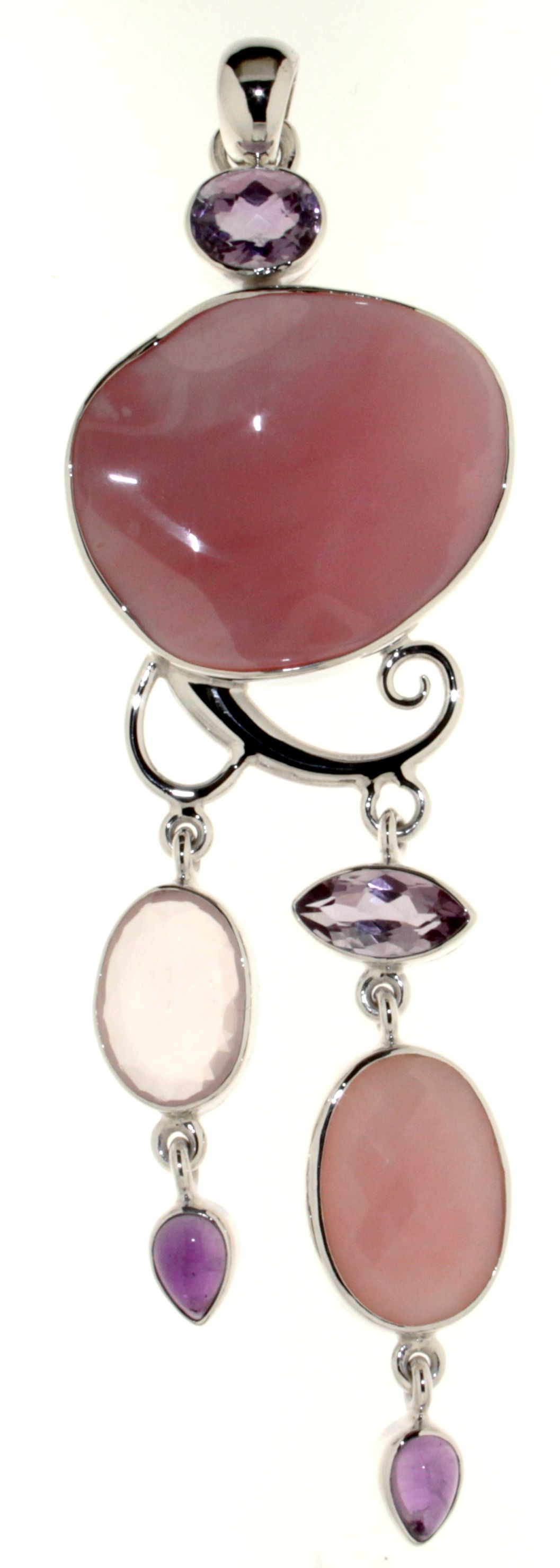 Pendente con Conchiglia Gigas, Ametista, Opale Andina e Quarzo Rosa