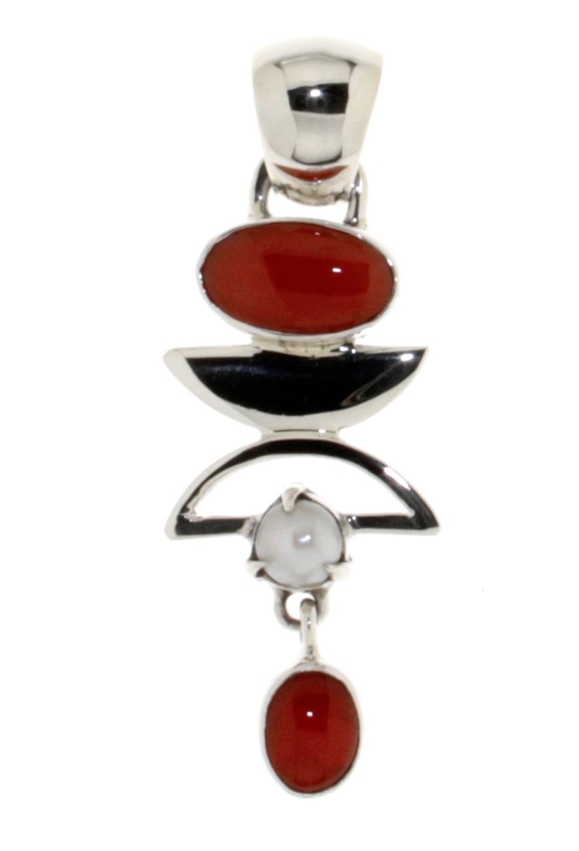 Pendente Geometrico con Corallo rosso del Mar Mediterraneo e Perla