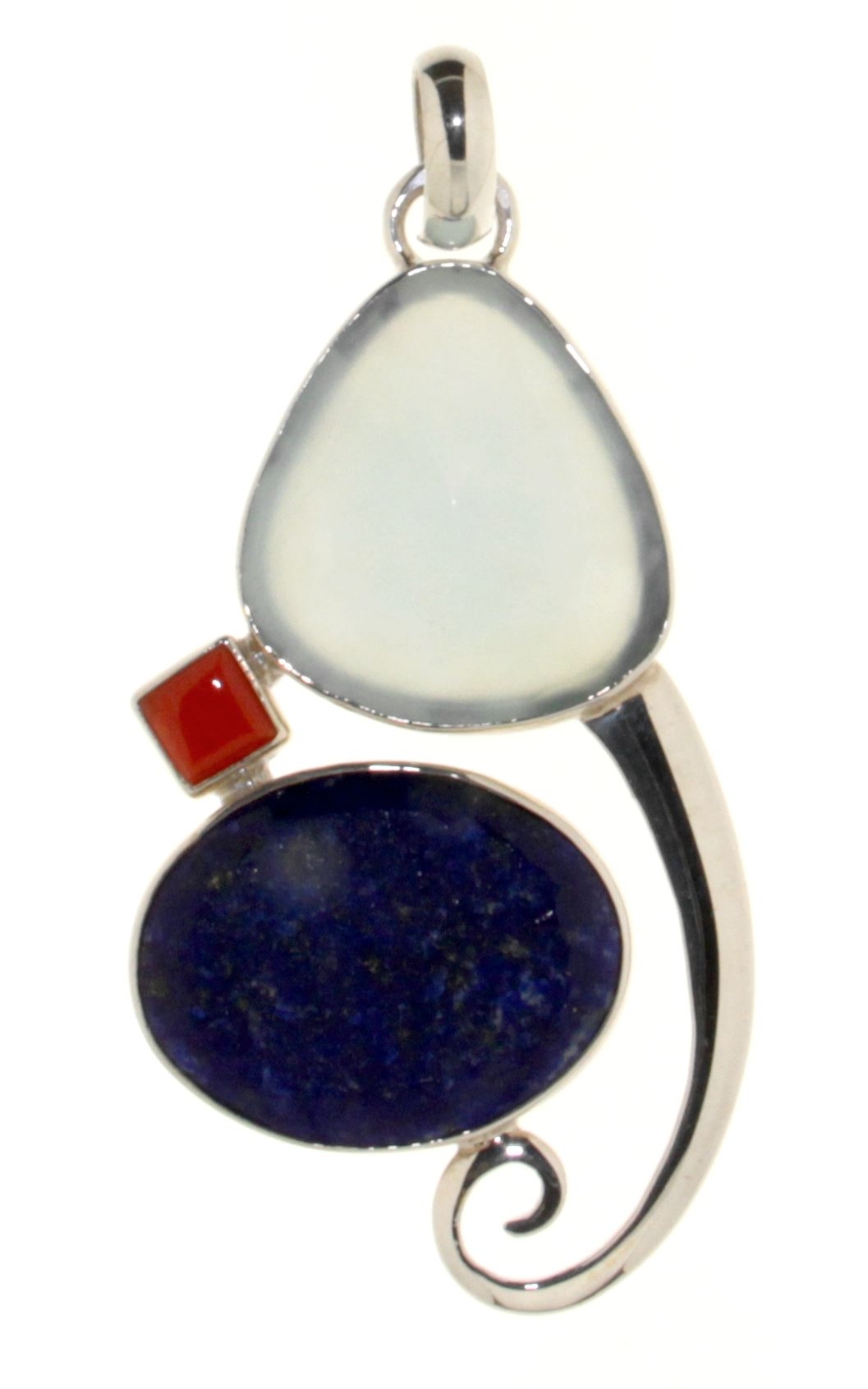 Pendente Lapis con Corallo Rosso e Calcedonio