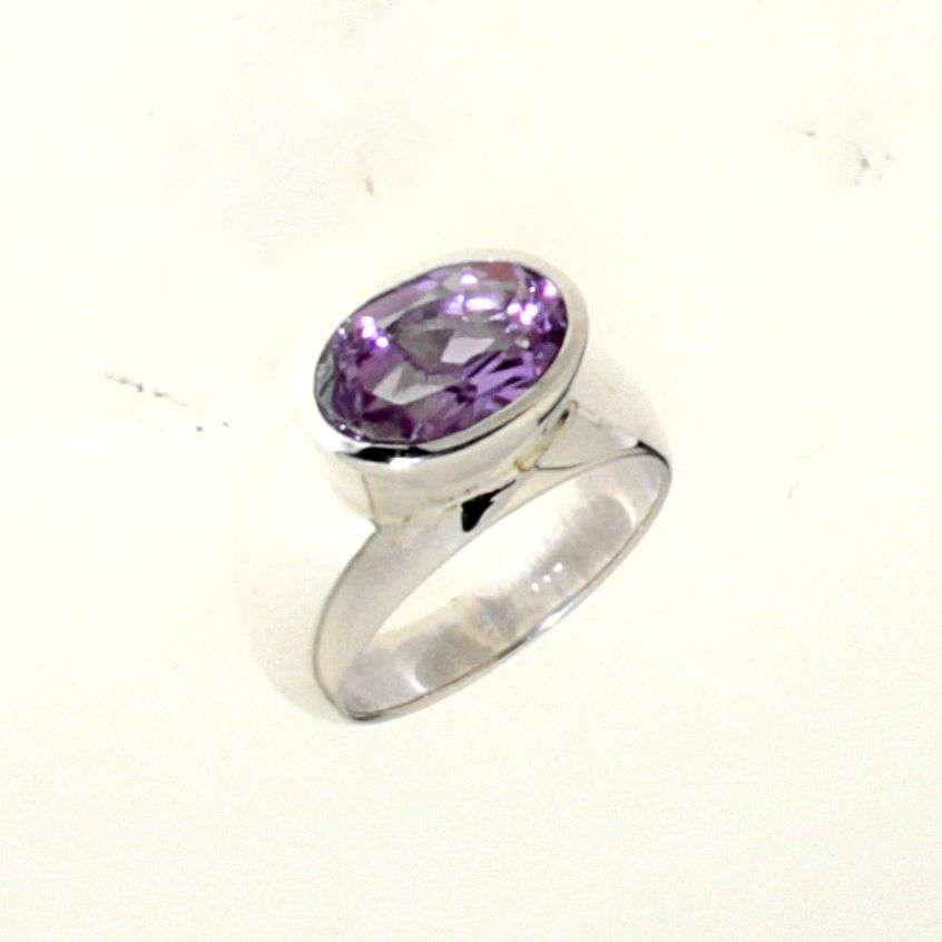 Anello a Fascia con Castone Alto e Ametista - Misura 15